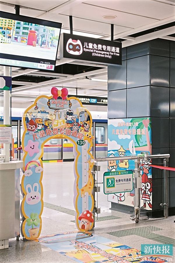 近日,广州地铁在二号线白云公园站新增了面向1.3米以下儿童的“儿童免费专用通道”。该通道采用色彩鲜艳、明亮活泼的设计,既便于家长识别,也能吸引小朋友注意,符合身高要求的儿童无须刷卡即可直接、快速通行,为亲子家庭出行增添便利。